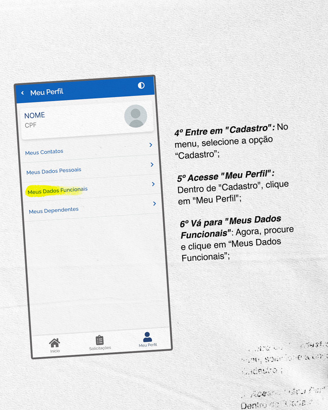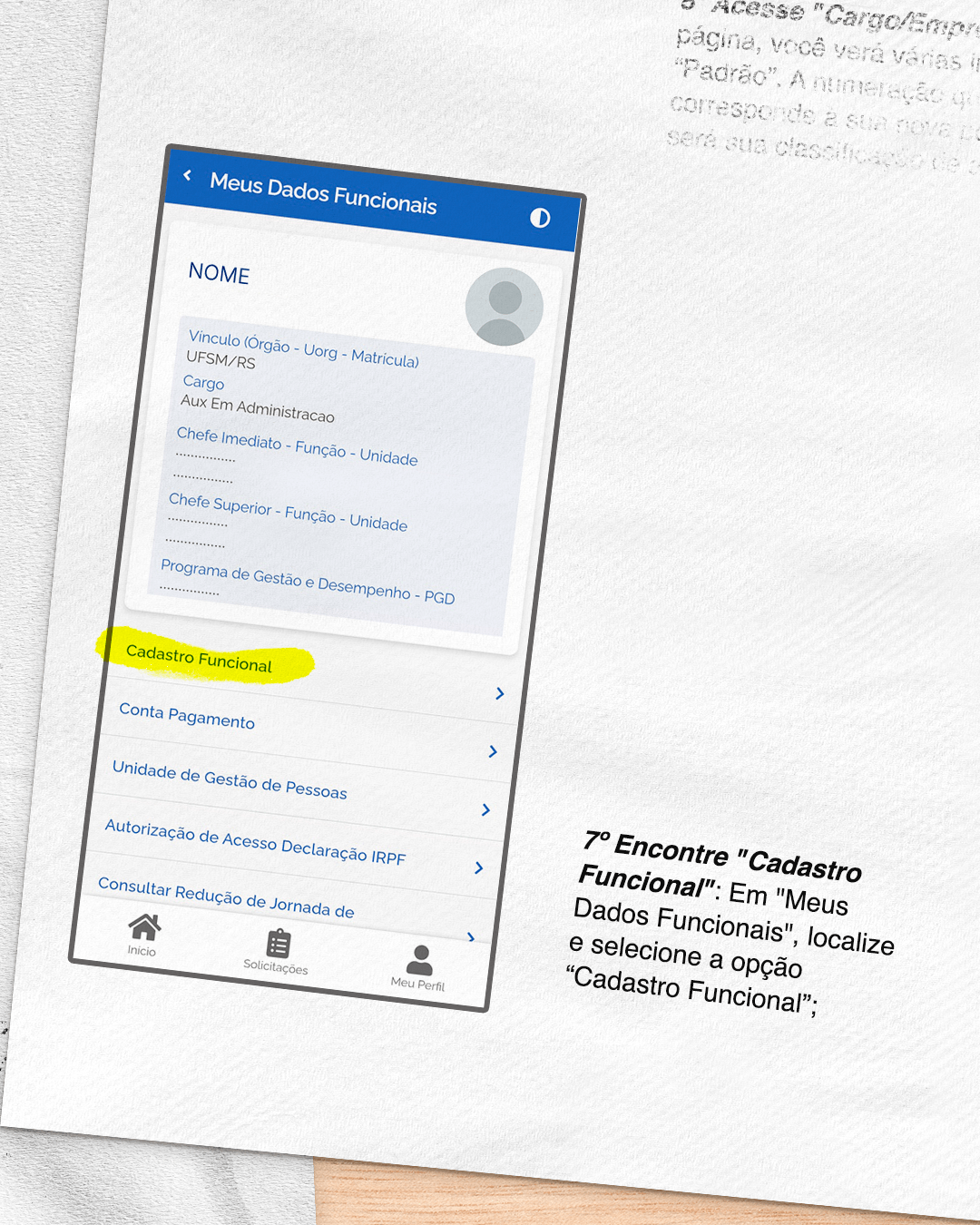 7º Encontre “Cadastro Funcional”: Em “Meus Dados Funcionais”, localize e selecione a opção “Cadastro Funcional”;