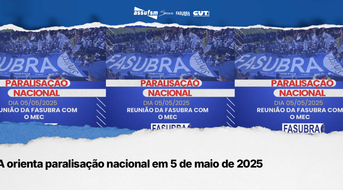 A Federação de Sindicatos de Trabalhadore(a)s Técnico Administrativos(as) em Instituições de Ensino Superior Públicas do Brasil (FASUBRA) orienta os sindicatos de base para Paralisação Nacional dia 5 de maio de 2025. A decisão foi aprovada durante uma plenária virtual realizada recentemente, com ampla participação das bases sindicais.