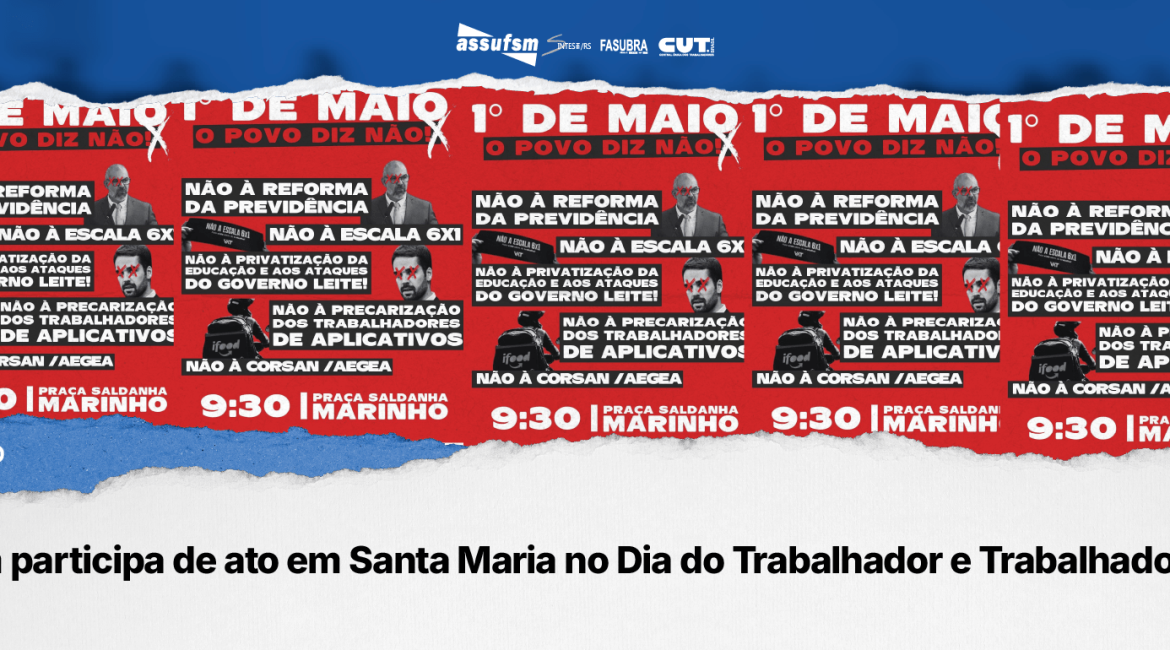No dia 1º de Maio é Dia do Trabalhador e Trabalhadora e a Assufsm irá participar do ato que está sendo organizado por diversas entidades sindicais e da educação pública municipal e estadual. Confira a convocação:
