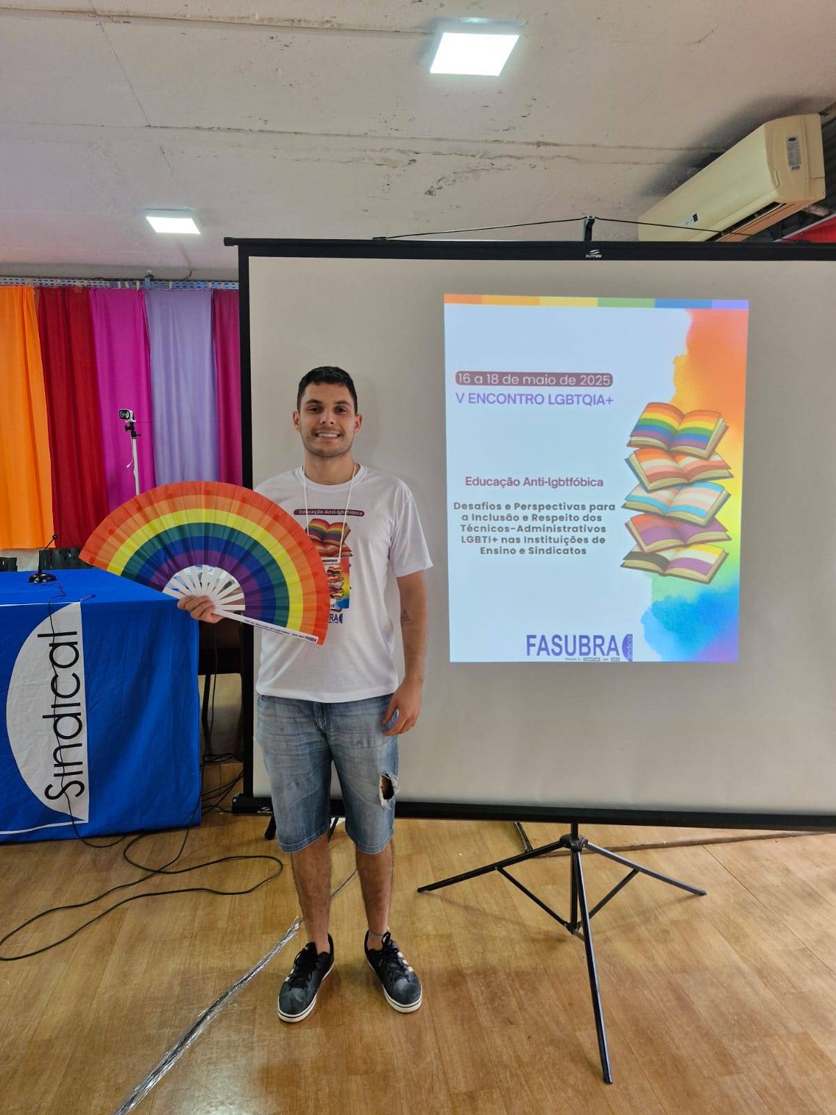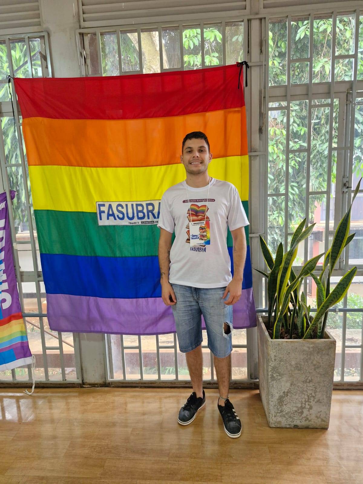 Nos dias 16, 17 e 18 de maio, a FASUBRA realizou seu V Encontro LGBTQIA+, em Brasília. A programação foi extensa no final de semana, com debates sobre saúde e saúde mental, letramento em gênero e diversidade e atividades culturais. Pela Assufsm, o servidor TAE Raphael Flores participou do V Encontro LGBTQIA+ da FASUBRA que teve como tema “Educação Anti-lgbtfóbica: Desafios e perspectivas para a inclusão dos Técnico Administrativos(as) em Educação nas instituições de ensino e sindicatos”. Conforme o TAE, o evento promoveu diversos espaços de diálogo e troca de experiências, foram apontadas as dificuldades enfrentadas não somente pela categoria, mas pelo conjunto de trabalhadores(as), especialmente os LGBTQIA+. Na análise de Rapahel, o preconceito é uma constante dentro e fora dos muros da universidade, e é preciso reivindicar ações afirmativas para pessoas trans no acesso à cursos de graduação e pós-graduação, concursos públicos, iniciativa privada e garantir a permanência e a dignidade. Para o TAE, a ausência de dados oficiais acerca da violência e da representatividade de pessoas LGBTQIA+, a falta de discussão das questões de gênero e sexualidade nas escolas, a insuficiência de políticas públicas voltadas à segurança, saúde e bem-viver preocupam. “Nas IFES, é essencial que sejam pensadas políticas que valorizem e promovam a diversidade, por exemplo através da reserva de vagas para pessoas LGBT em cargos de chefia. A formação e letramento de servidores(as) TAES para um atendimento qualificado e humanizado é essencial, assim como a criação de uma agenda permanente de lutas”, finaliza ele, em seus informes. Nos três dias do encontro, a FASUBRA realizou a divulgação das atividades, bem como algumas fotos que foram realizadas durante o evento. Veja, abaixo, como foram os dias do encontro: