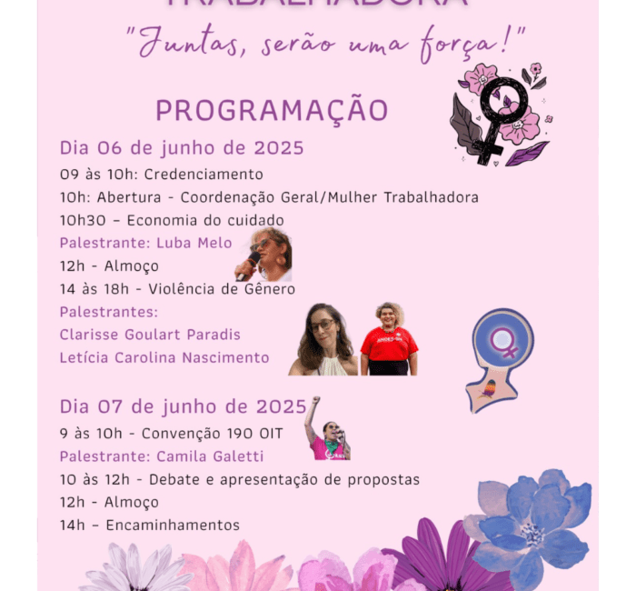 Nos dias 6 e 7 de junho de 2025, em Brasília/DF, acontecerá o Encontro Nacional da Mulher Trabalhadora da FASUBRA Sindical. Nesta edição, uma homenagem especial será prestada à Bertha Lutz, referência histórica na luta pelos direitos das mulheres no Brasil. Bióloga, educadora, diplomata e uma das maiores ativistas feministas do país, Bertha foi fundamental para a conquista do voto feminino, oficializado em 1932. As entidades de base poderão credenciar suas representantes até o dia 30 de maio de 2025. Representando a base das Mulheres Trabalhadoras da Assufsm irão: a TAE Rosimar Rubenich e a TAE aposentada Natália Weiss. Além disso, a Coordenadora de Formação Política e Sindical Vanessa Kunz e a Coordenadora Geral Alessandra Alfaro também colocaram seus nomes à disposição durante a última reunião do GT Mulheres Trabalhadoras da Assufsm (veja aqui). Veja a programação completa do encontro: A FASUBRA chama as Mulheres Trabalhadoras do Serviço Público para estarem juntas fortalecendo a resistência, celebrando as conquistas das mulheres e construindo novos caminhos para a igualdade!