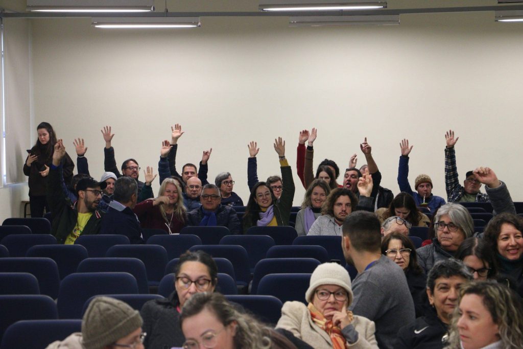 Após a avaliação da conjuntura e dos desdobramentos do Acordo de Greve de 2024, a categoria votou para representação na Plenária da Fasubra, que vai acontecer entre os dias 13 e 15 de junho, em Brasília. Em regime de votação, duas chapas disputaram. A chapa Unir conquistou 29 votos, e estará representada por três delegados: Jorje Trindade, Wilson Rosa e Velcir Rubenich. A chapa Vamos à Luta conquistou 20 votos e estará representada por dois delegados: Raphael Braibante Flores e Eliseu Oliveira.