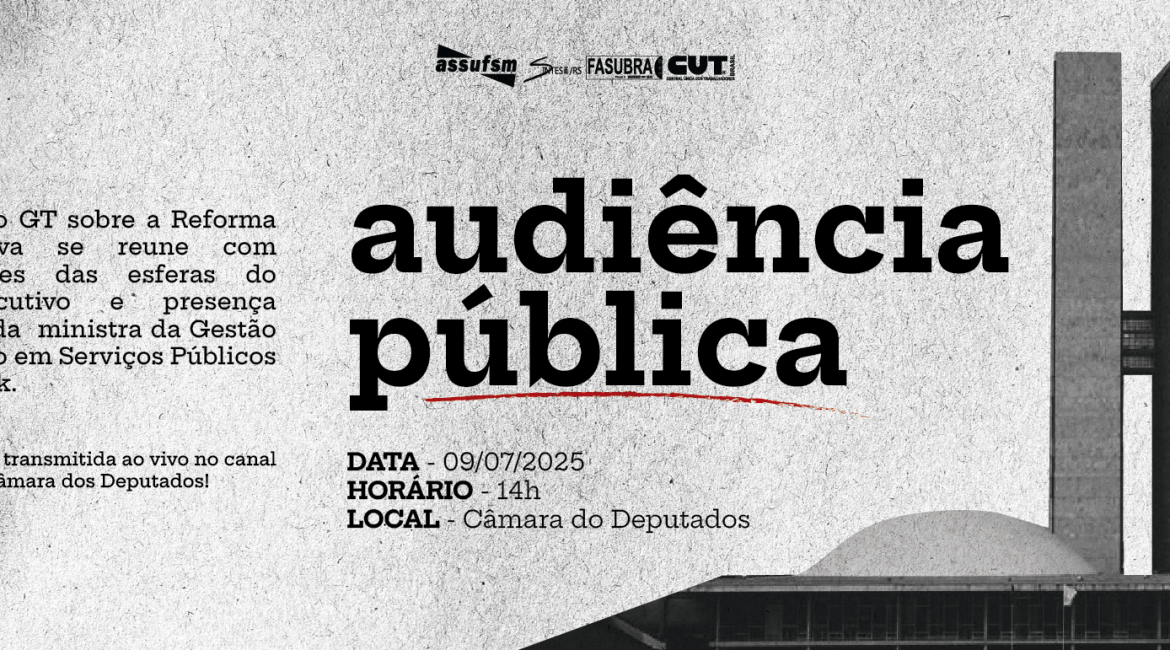 A Assufsm convoca toda a categoria a acompanhar a Audiência que será transmitida pelo canal do Youtube da Câmara dos Deputados (https://www.youtube.com/@camaradosdeputadosoficial/)