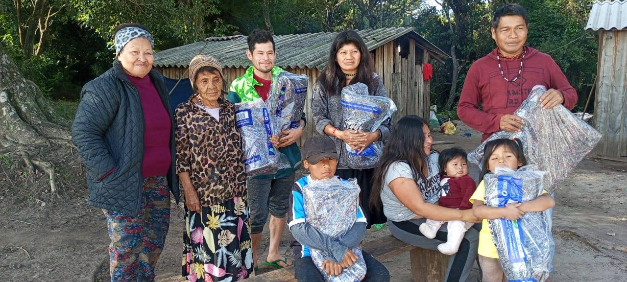 Na última sexta-feira (04/07), a servidora TAE aposentada, Vânia Paulon, juntamente com a servidora TAE Beatriz Rigon, realizaram a entrega de 50 cobertores ao Povo indígena Guarani. Os cobertores foram arrecadados a partir de campanha da Assufsm por meio de doações do Grupo de Escoteiros Henrique Dias, servidores(as) da UFSM e do Projeto Pilão.