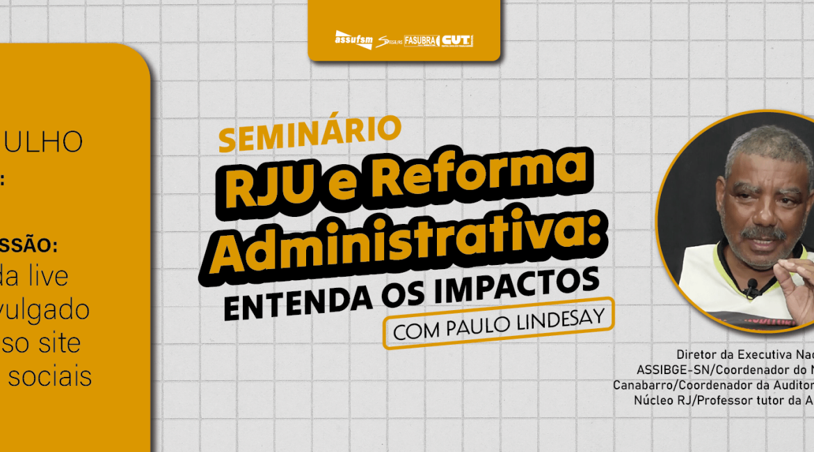 No dia 29 de julho, às 10h, acontece o seminário online “RJU e Reforma Administrativa: Entenda os Impactos”, uma atividade formativa voltada às trabalhadoras e trabalhadores Técnico Administrativos em Educação (TAEs) da UFSM. O evento integra a programação da paralisação de 48h convocada nacionalmente pela FASUBRA, em defesa dos serviços públicos e contra a Reforma Administrativa.
