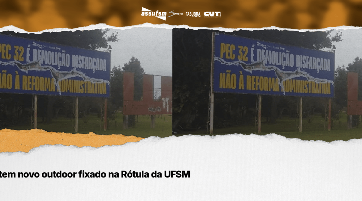 A Assufsm informa que o outdoor com temática sobre a PEC 32 – Reforma Administrativa – foi fixado na Rótula de acesso ao Campus Sede da Universidade Federal de Santa Maria, em Camobi.