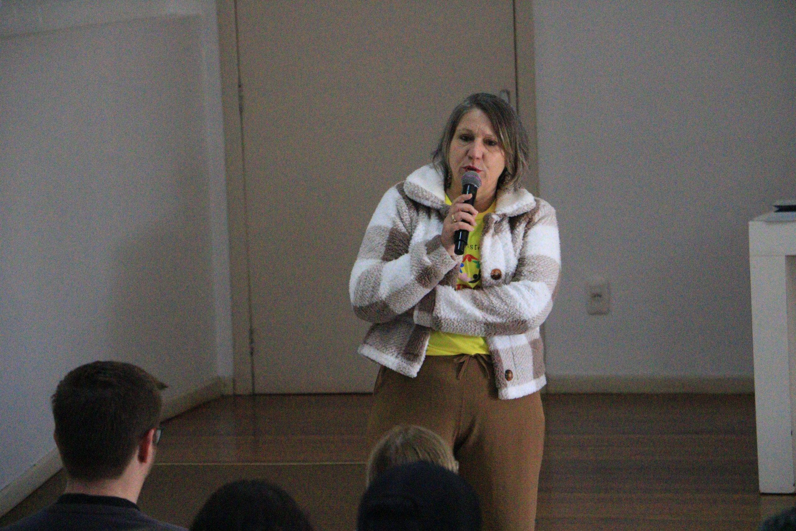A categoria de Técnico-administrativos(as) da UFSM se reuniu na manhã desta quarta-feira (13), no auditório do Colégio Politécnico, para uma Assembleia convocada pela Assufsm. A abertura foi conduzida pela Coordenadora Geral, Natalia San Martin, que realizou a leitura do ID da Fasubra n° 22/2025. Ao seu lado, compôs a mesa a Coordenadora de Secretaria, Gabriela Malaquias.