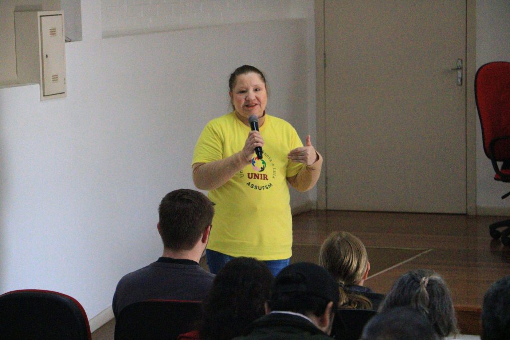 A TAE Rosimar Rubenich destacou a participação na Conferência Livre Nacional com foco nas políticas para mulheres realizada pela Fasubra na semana passada, além de atualizações do GT Mulheres. Rosimar informou sobre o Ato com panfletagem que está sendo articulado para a próxima terça-feira, em frente ao Arco da UFSM.