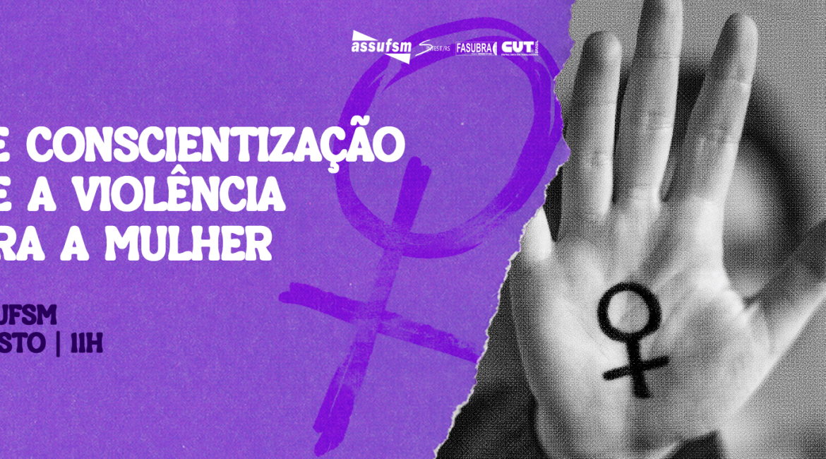 O Grupo de Trabalho (GT) Mulher Trabalhadora da Assufsm promove, no dia 19 de agosto, às 11h, um ato no Arco da UFSM para marcar o Dia de Conscientização sobre a Violência contra a Mulher.