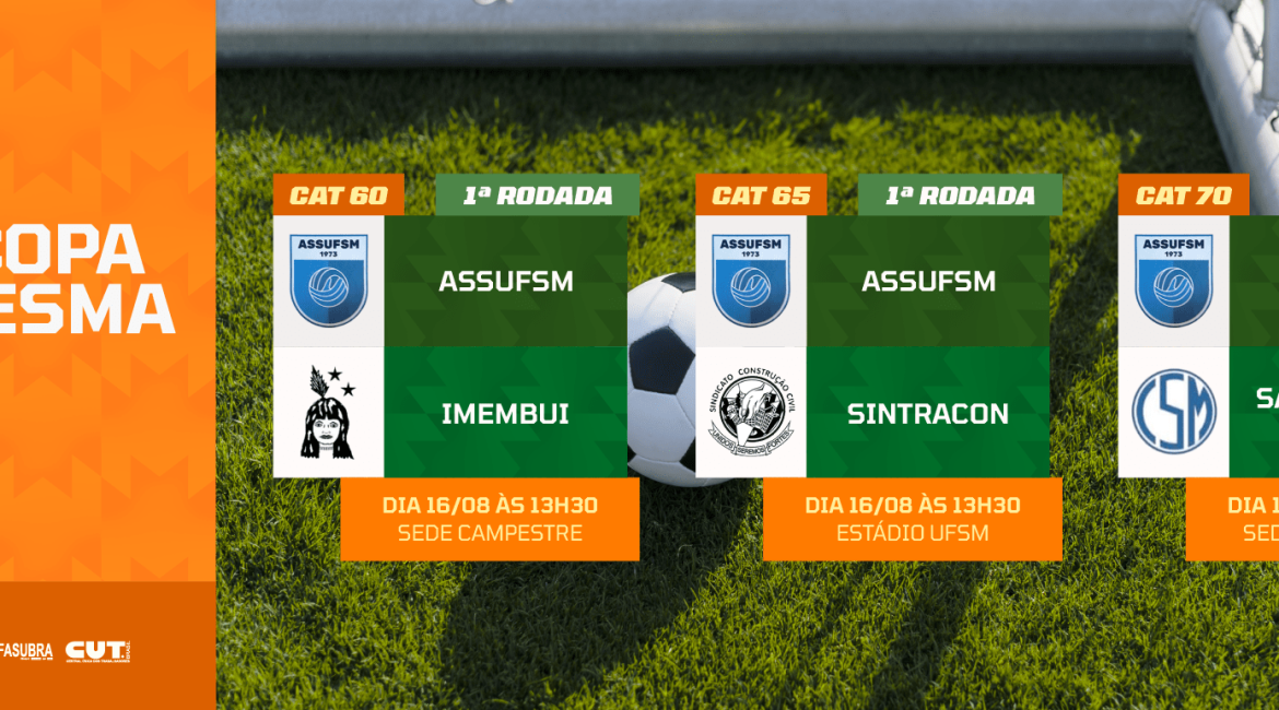 Os jogos da ASSUFSM acontecem no próximo sábado (16), pela 1ª rodada do 43° Campeonato do AFUVESMA, neste segundo semestre de 2025. Confira:
