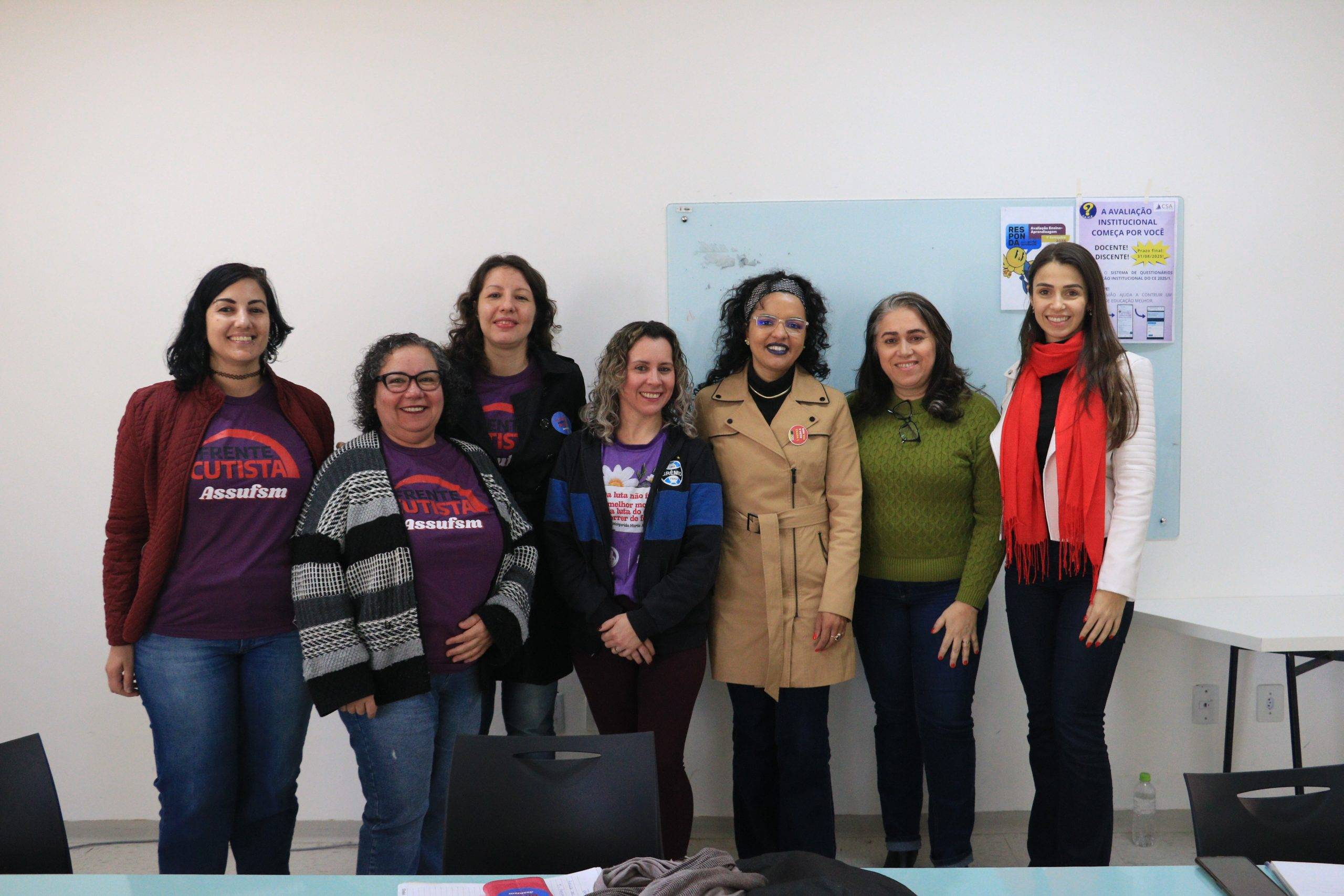 Participaram da reunião, pela ASSUFSM, as coordenadoras gerais Alessandra Alfaro e Natália San Martin, a coordenadora de Formação Política e Sindical Vanessa Kunz, além das TAEs Sandra Rocha e Gláucia Tassinari. Representando a PROGEP, estiveram presentes Márcia Lorenzt e Géssica Sório, responsáveis por trazer explicações sobre aspectos específicos do programa.