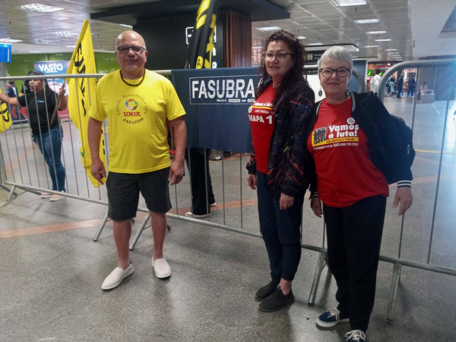 A Assufsm esteve presente em Brasília durante essa semana para realizar ações contra a Reforma Administrativa, junto com demais entidades sindicais da educação federal. Permaneceram na capital brasileira, após a Plenária Nacional da Federação, o TAE e Coordenador de Esporte Cultura e Lazer da Assufsm Paulo Quadrado, e as TAEs Arlete Vieira e Dalva Moraes. No dia 2 de setembro, servidoras e servidores públicos realizaram ato de recepção aos deputados no aeroporto de Brasília com a ação “Se votar, não volta”, deixando claro aos parlamentares que quem votar a favor de uma reforma que irá esvaziar a função social dos serviços públicos, prejudicando amplamente a população, não será reeleito. As mobilizações continuaram ao longo do mês de setembro. No dia 3 de setembro, o Fonasefe organizou o Ato-vigília contra a Reforma Administrativa ao mesmo tempo que acontece a Comissão Geral na Câmara dos deputados para discutir a Reforma, a qual a FASUBRA esteve presente com representantes da Federação. No dia 10 de setembro, o conjunto das servidoras e servidores públicos realizarão um ato contra a Reforma Administrativa, com chamada de caravanas para Brasília. No mesmo dia e no dia 11/09, as servidoras e servidores federais técnico-administrativos em educação (TAEs) e Docentes irão realizar paralisação nacional. Veja mais fotos: