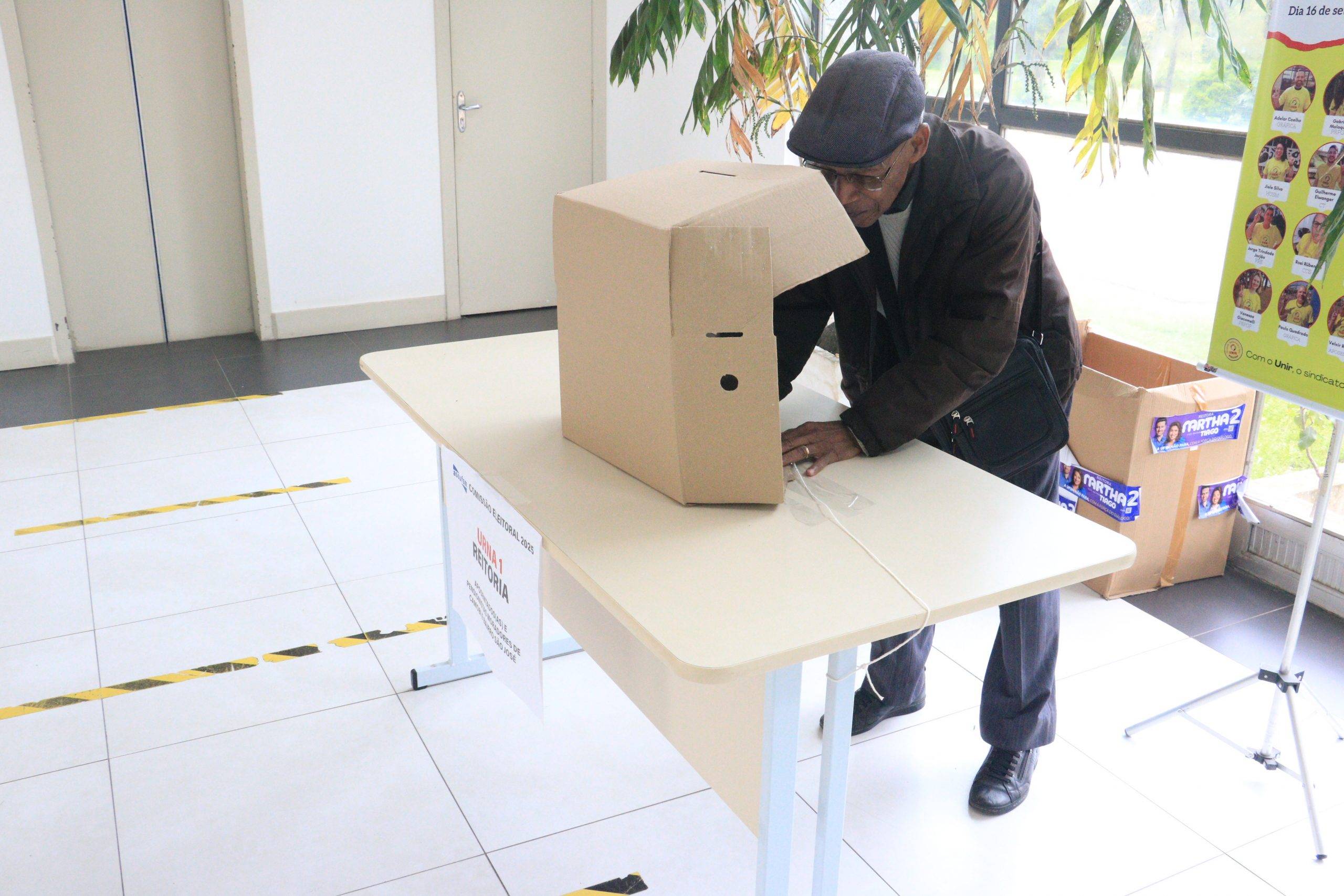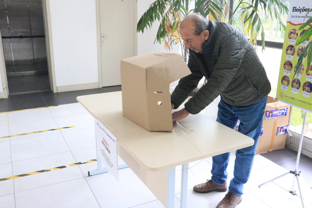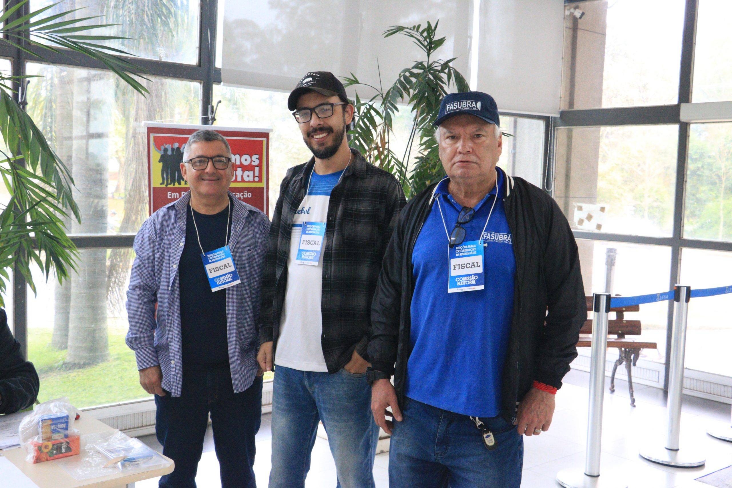 A votação presencial para aposentados(as) e pensionistas ocorre no prédio da Reitoria (urna 1), no campus sede, e no prédio da Antiga Reitoria (urna 2), no centro de Santa Maria. A lisura do processo é garantida por fiscais de cada chapa e pela Comissão Eleitoral, composta pelos TAEs Ciro Oliveira, Rogério de Quadros e Eduíno Simões.