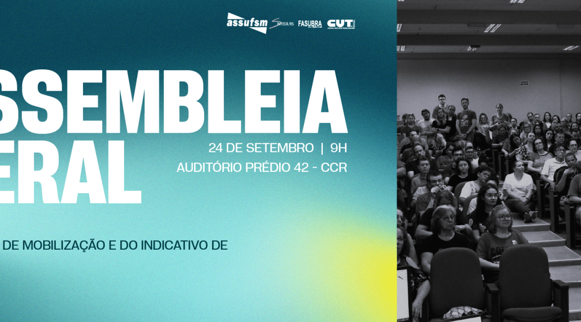 A Assufsm convoca a categoria a participar da Assembleia Geral, na próxima quarta-feira (24), às 9h, no auditório do Prédio 42, no Centro de Ciências Rurais (CCR).