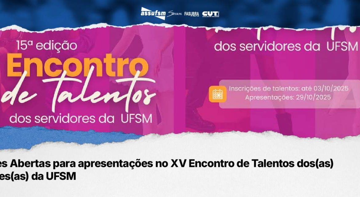 A Universidade Federal de Santa Maria (UFSM) informa que estão abertas as inscrições para o XV Encontro de Talentos, evento que tem como objetivo celebrar e valorizar as habilidades artísticas dos(as) servidores(as).
