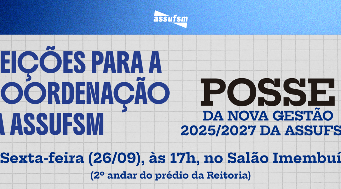 Para isso, na sexta-feira (26), às 17h, no Salão Imembuí, no segundo andar do prédio da Reitoria, ocorrerá a cerimonia de posse da nova Coordenação da Assufsm. O Setor de Comunicação da Assufsm irá transmitir, ao vivo, pelo seu canal do YOUTUBE. Assista, curta e compartilhe para informar à mais colegas sobre esse dia importante e histórico para a Assufsm.
