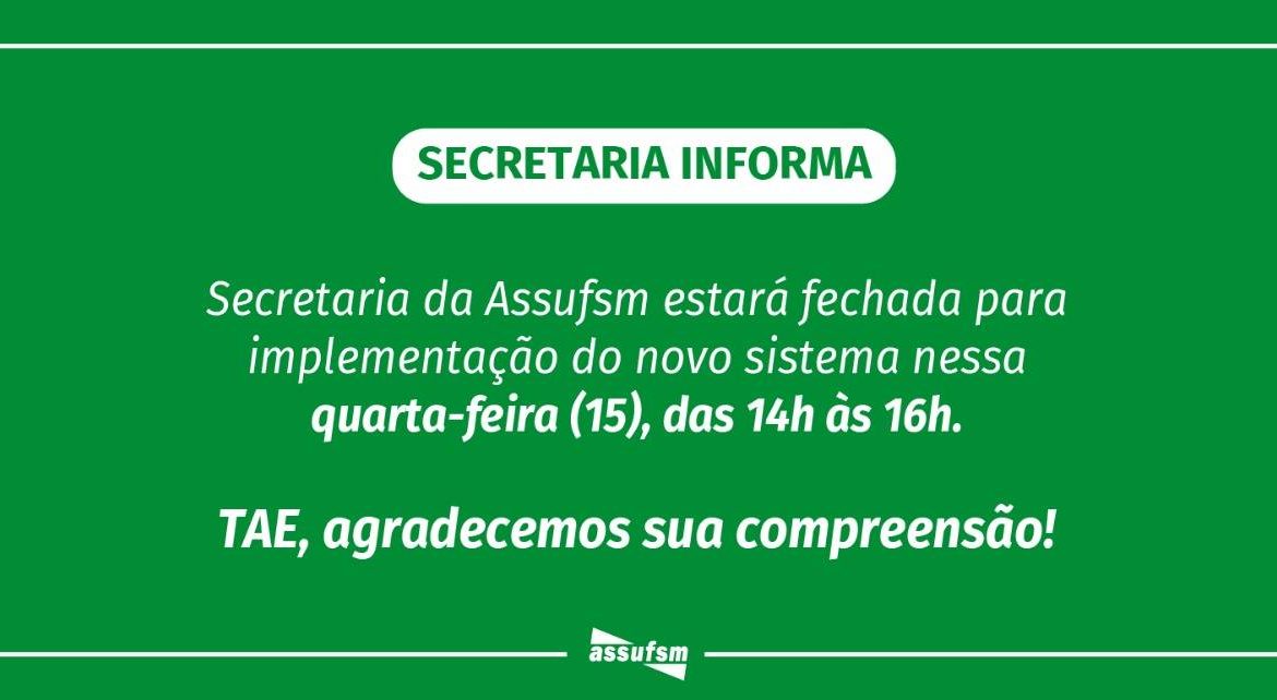 Das 14h às 16h desta quarta-feira (15), a Secretaria estará fechada para implementação do novo sistema.