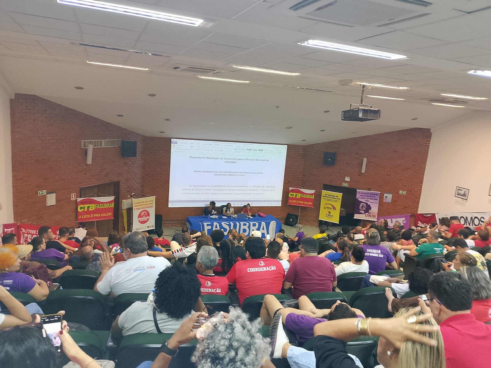 Após as falas, a plenária aprovou a resolução apresentada pela Direção Nacional que inclui, no calendário de lutas da categoria, o Dia Nacional de Luta contra a Reforma Administrativa e pelo cumprimento integral do acordo de greve. A mobilização ocorrerá no dia 4 de dezembro, com atos sincronizados em todo o país. As atividades deverão ser realizadas de forma regionalizada ou nas capitais, de acordo com a organização de cada base sindical.