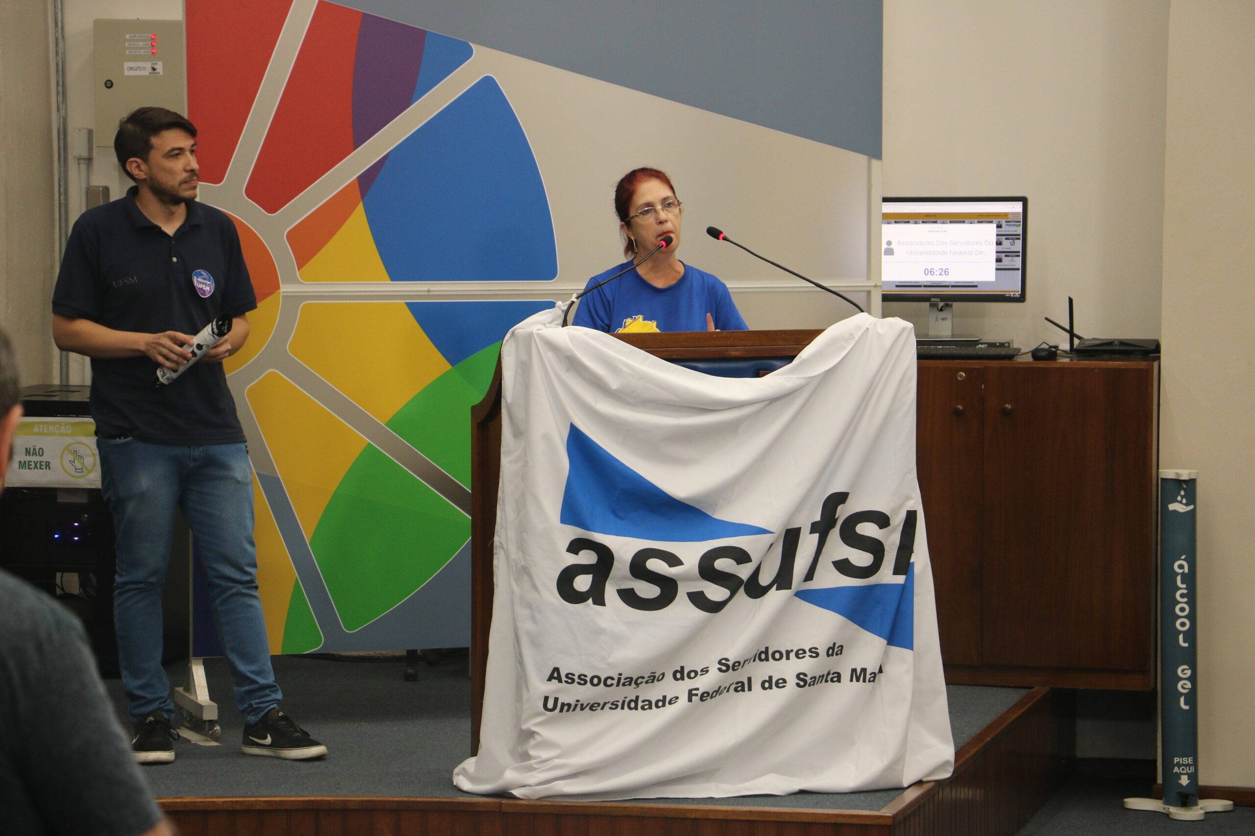 Na terça-feira (9), a Assufsm participou da Tribuna Livre da Câmara Municipal de Santa Maria, em espaço proposto pela vereadora Alice Carvalho, do PSoL, para discutir a Reforma Administrativa, considerada prejudicial ao serviço público. Os Coordenadores Gerais Guilherme Elwanger e Loiva Chansis representaram a associação e utilizaram os 15 minutos da tribuna, destinados à manifestação para expressar preocupação com a PEC 38, que tramita no Congresso Nacional e é extremamente prejudicial ao funcionalismo público em âmbitos que fragilizam direitos básicos e a estrutura das carreiras ao substituir a estabilidade tradicional por um modelo de permanência condicionada a avaliações periódicas, além de um longo pacote de maldades.