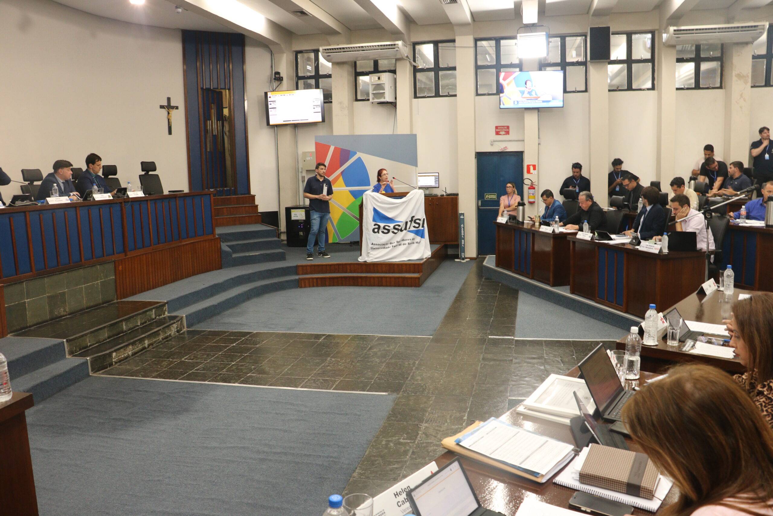 Ao final, as lideranças da Assufsm solicitaram que vereadores e vereadoras se posicionem publicamente contra a PEC 38 e articulem, junto às bancadas estaduais e federais, ações para barrar o avanço da proposta. O discurso foi encerrado com um apelo enfático: dizer não à PEC 38 é defender a soberania nacional, os direitos sociais e a continuidade dos serviços públicos essenciais.