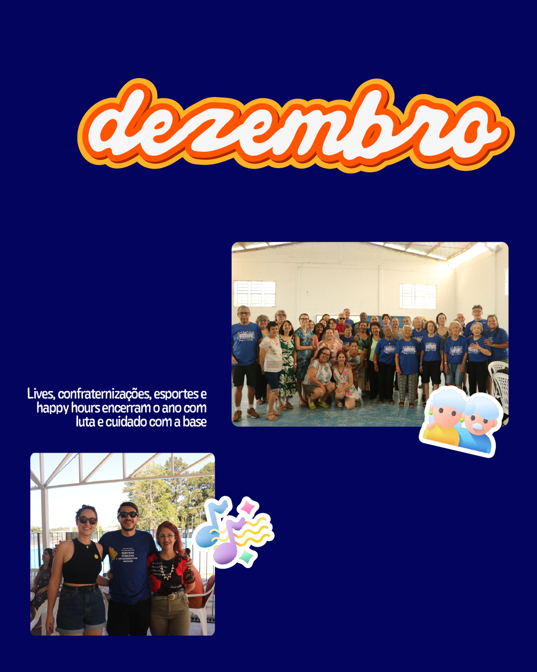Os aposentados(as) e pensionistas também estiveram no centro das ações do mês. O GT de Assuntos de Aposentadoria e Pensão realizou seu último encontro do ano, com atividades voltadas à qualidade de vida e análise aprofundada da Reforma Administrativa, além do tradicional almoço de confraternização, que celebrou mais de duas décadas de organização, luta e convivência.