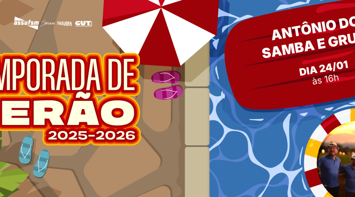 arrow_right No dia 24 de janeiro, a Sede Campestre da Assufsm recebe a banda Antônio do Samba e Grupo no Happy Hour da Temporada de Verão.