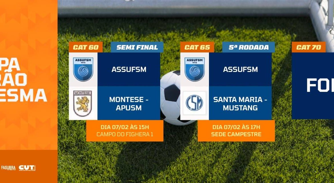 FUTEBOL: Confira os jogos das categorias 60, 65 e 70 anos da Assufsm na Copa Verão AFUVESMA 2026 para o próximo sábado (07)