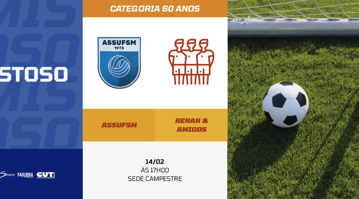A ASSUFSM convida para o Amistoso da Categoria 70 Anos, que será realizado no próximo dia 14 de fevereiro, às 17h, na Sede Campestre.