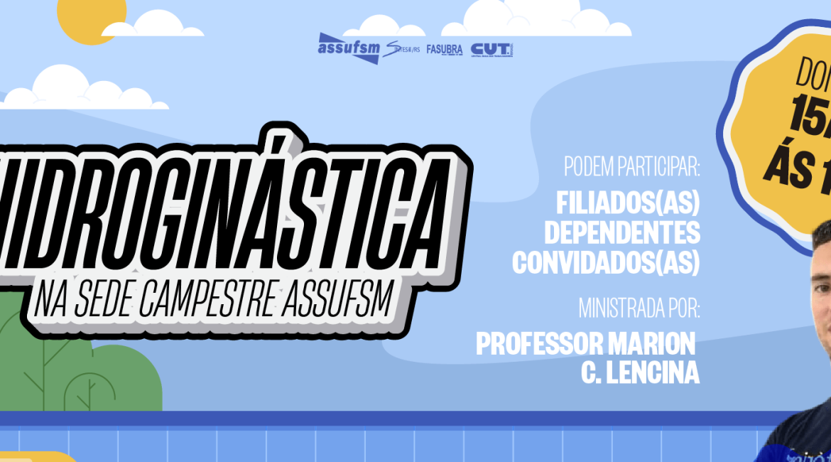 A partir deste domingo, às 16h, iniciam as aulas de hidroginástica, ampliando as opções de atividade física e lazer para a categoria. Podem participar da aula associados(as), dependentes e convidados(as) que estiverem utilizando as piscinas. A atividade é gratuita e busca promover saúde, bem-estar e integração entre os(as) frequentadores(as) da Sede Campestre. As aulas serão ministradas pelo professor Marion C. Lencina, que ficará responsável pela condução das atividades.Prestigie!