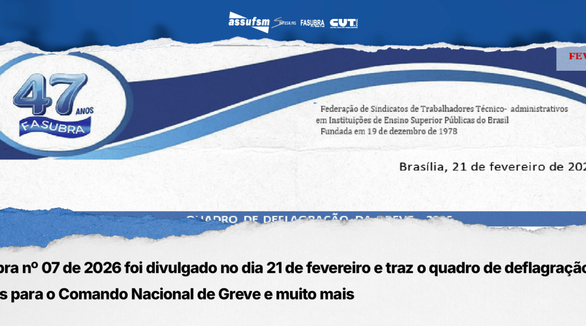 ID da Fasubra nº 07 de 2026 foi divulgado no dia 21 de fevereiro e traz o quadro de deflagração da greve, orientações para o Comando Nacional de Greve e muito mais