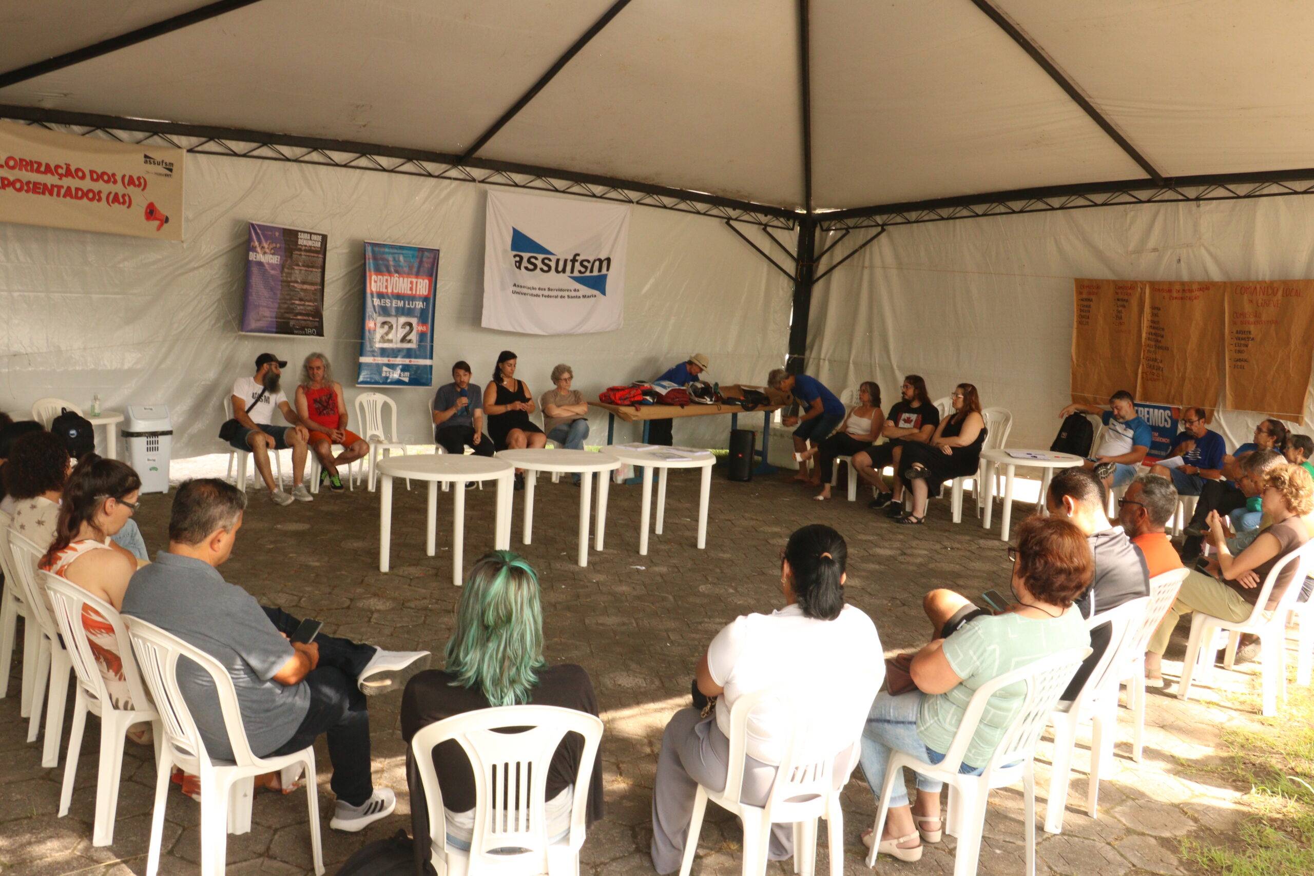A pauta principal da reunião foi a organização de um ato para ampliar a visibilidade da greve. Como parte dessa mobilização, está prevista uma atividade na próxima sexta-feira (20), com concentração às 11h30min no Arco da UFSM, com o tema “UFSM em defesa da educação e da saúde pública”. Antes da mobilização, será realizada uma discussão no lonão da greve sobre a Reforma Administrativa.