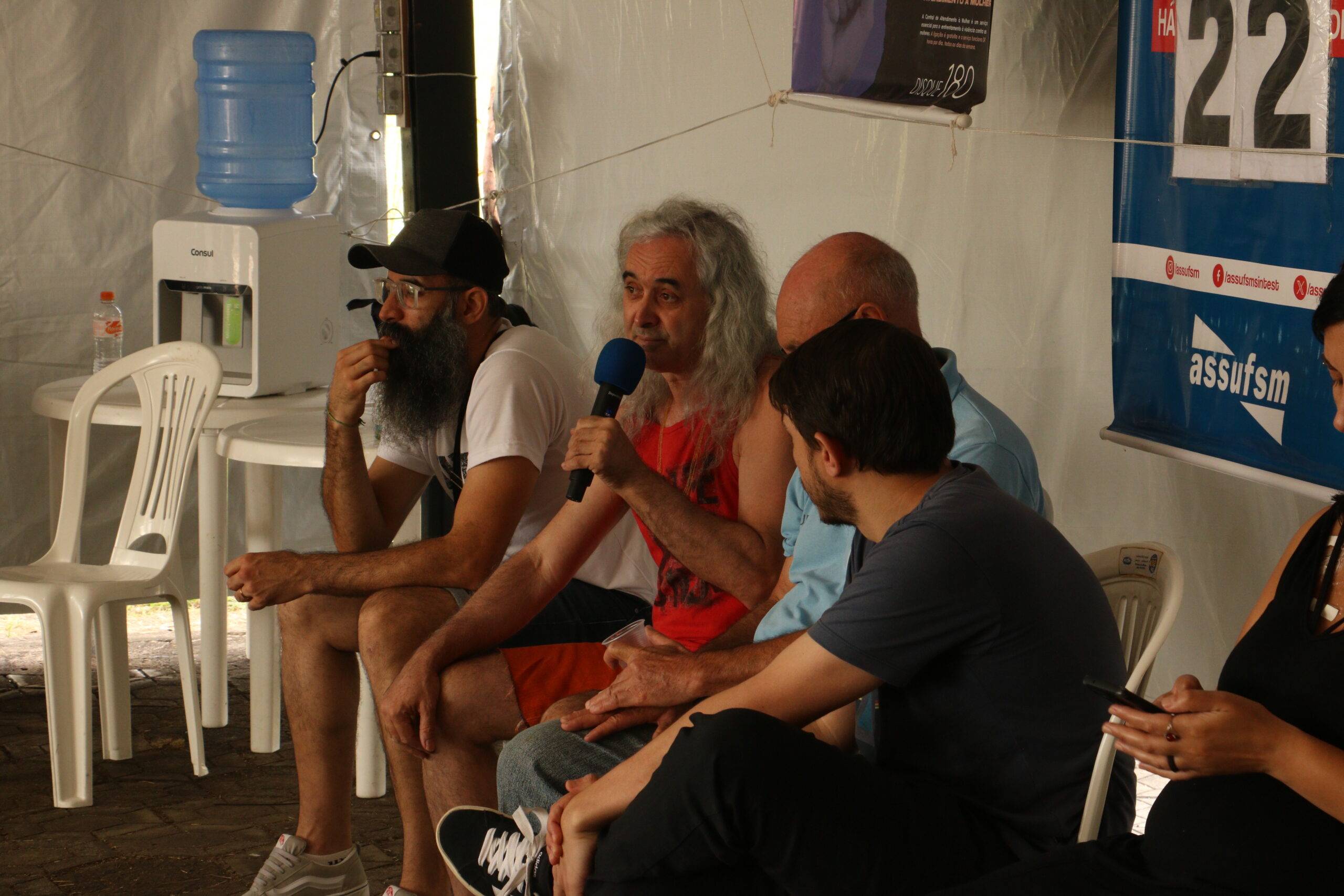 Representando a Sedufsm, o professor aposentado Jadir Lemos destacou o apoio da categoria docente e ressaltou a importância da construção de um ato unificado em defesa do cumprimento do acordo de greve e da universidade pública.