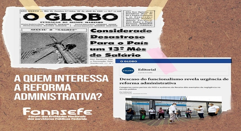 Em texto editorial publicado no dia 18 de julho, com o título “Descaso do funcionalismo revela urgência de reforma administrativa", o Jornal O Globo defende a reforma administrativa e desrespeita os servidores públicos federais ao retratar de forma equivocada a realidade do serviço público brasileiro. O texto tenta deslegitimar a luta...