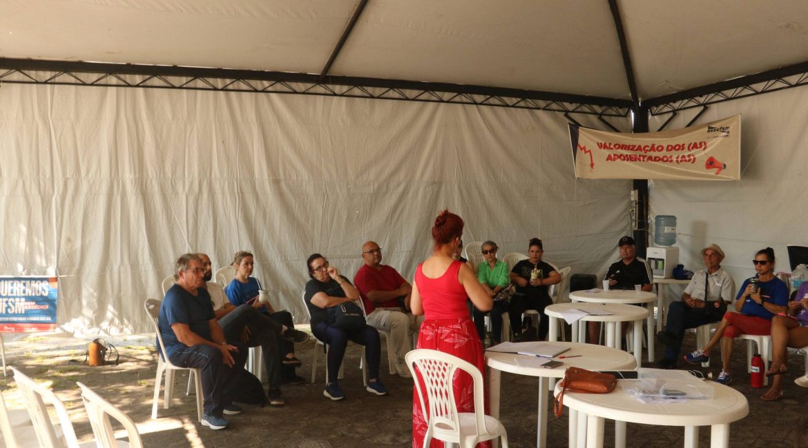 Nesta quinta-feira (05), décimo primeiro dia da greve dos(as) servidores(as) técnico-administrativos(as) em educação da UFSM, foi realizada a tradicional reunião no Lonão da greve, em frente ao INPE, reunindo a categoria para informes e organização das próximas atividades do movimento. A reunião foi iniciada pela Coordenadora Geral da Assufsm e...