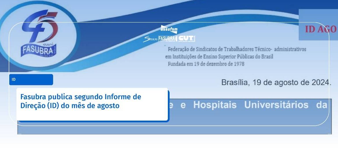 Fasubra publica segundo Informe de Direção (ID) do mês de agosto e chama para reunião virtual do GT de Saúde e Hospitais Universitários