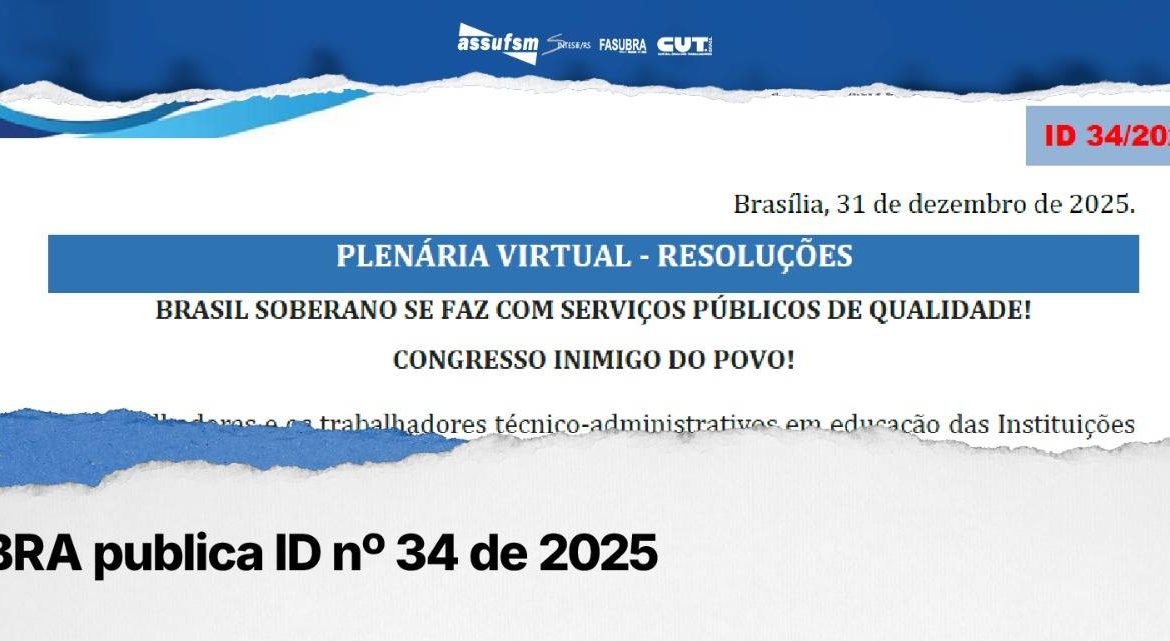 Na última quarta-feira (31), a FASUBRA Sindical divulgou o Informe de Direção (ID) nº 34/2025, que reúne os principais informes de interesse da categoria dos Técnico-Administrativos em Educação (TAEs). Entre os destaques do documento estão as resoluções discutidas na última Plenária Virtual, realizada nos dias 19 e 20 de dezembro;...