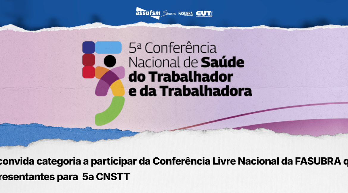 A FASUBRA, com representação no Conselho Nacional de Saúde, convida todas as trabalhadoras e trabalhadores das Instituições Públicas de Ensino Superior que se organizam sindicalmente na base da FASUBRA, a participarem da Conferência Livre Nacional da FASUBRA em âmbito nacional, para eleger representantes para participarem da etapa nacional da 5a...