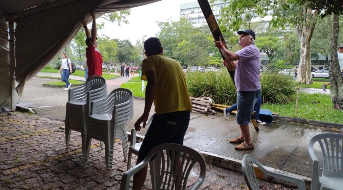 Na manhã desta sexta-feira(15), TAEs se reuniram no lonão instalado em frente ao Centro de Ciências Naturais e Exatas no campus sede de Santa Maria, para definir representantes do Comando Local e Nacional do movimento grevista. Ao longo de toda a greve, o lonão servirá de ponto de encontro e...