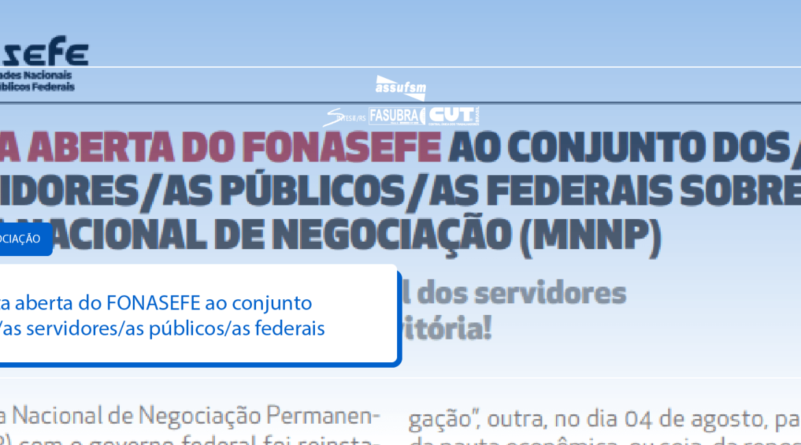 Fonasefe publica Carta Aberta ao conjunto dos/as servidores/as públicos/as federais sobre a MNNP