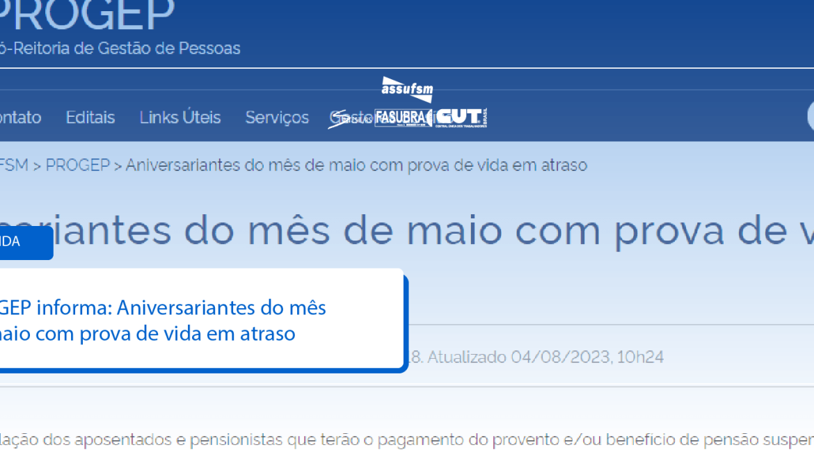 PROGEP informa: Aniversariantes do mês de maio com prova de vida em atraso
