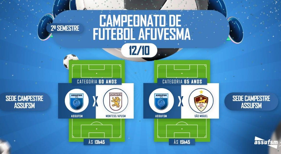 No próximo sábado, dia 12 de outubro, tem mais uma rodada do campeonato da AFUVESMA, para o segundo semestre de 2024, com a quinta rodada para as categorias dos 60 e 65 anos. Confira os jogos: ➡ Categoria 60 anos – 13h45min, na Sede Campestre Assufsm ASSUFSM X MONTESE/APUSM ➡ Categoria...