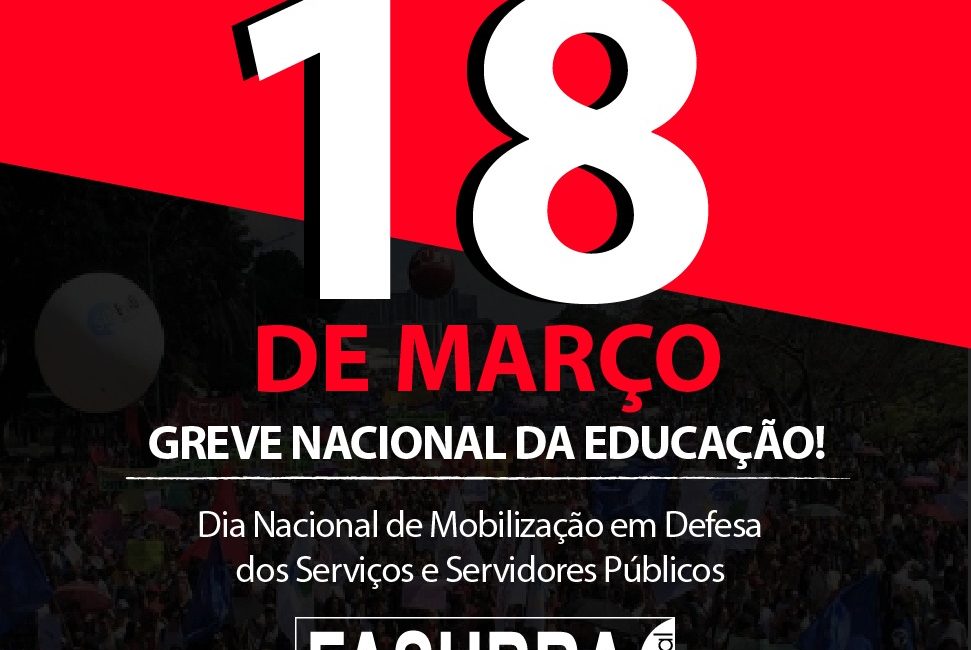 O dia 18 de março será dia de “Greve Nacional da Educação”. Este dia também é um chamado das centrais sindicais em defesa das servidoras, dos servidores e dos serviços públicos. É o momento para se preparar para um movimento maior durante o ano. Os ataques do atual governo não...