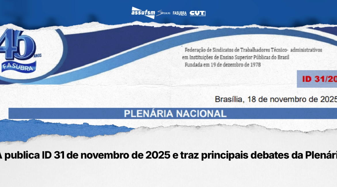 A FASUBRA Sindical divulgou, na última terça-feira (18), o ID 31/2025, que reúnes principais pontos debatidos durante a Plenária Nacional ocorrida nos dias 15 e 16 de novembro de 2025. O documento também apresenta as deliberações aprovadas para o próximo período, incluindo o calendário de lutas, ações de mobilização, estudos...