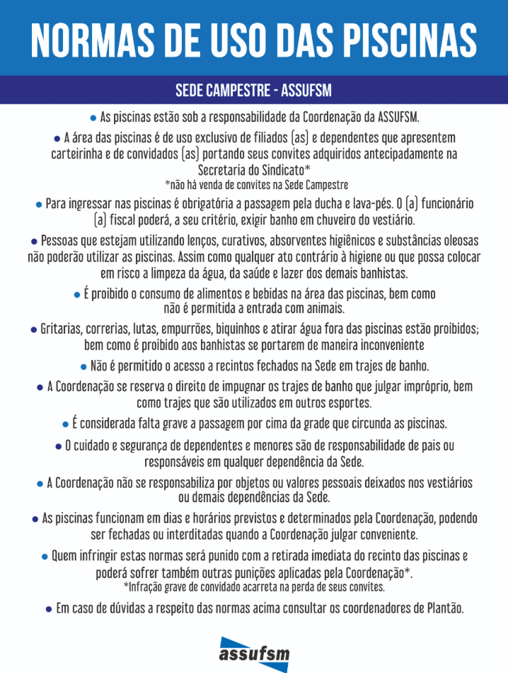 Consulte aqui as Normas de Uso das Piscinas da Assufsm